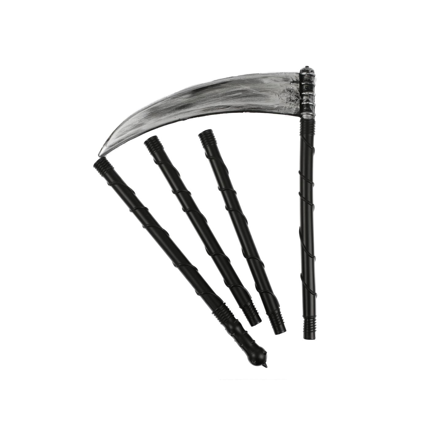 - SCREW TOGETHER - 4pc adjustable screw together scythe. 3 parts for the handle and 1 part is the scythe head. Made from good quality plastic. The handles are made with a ribbed design for better effect.