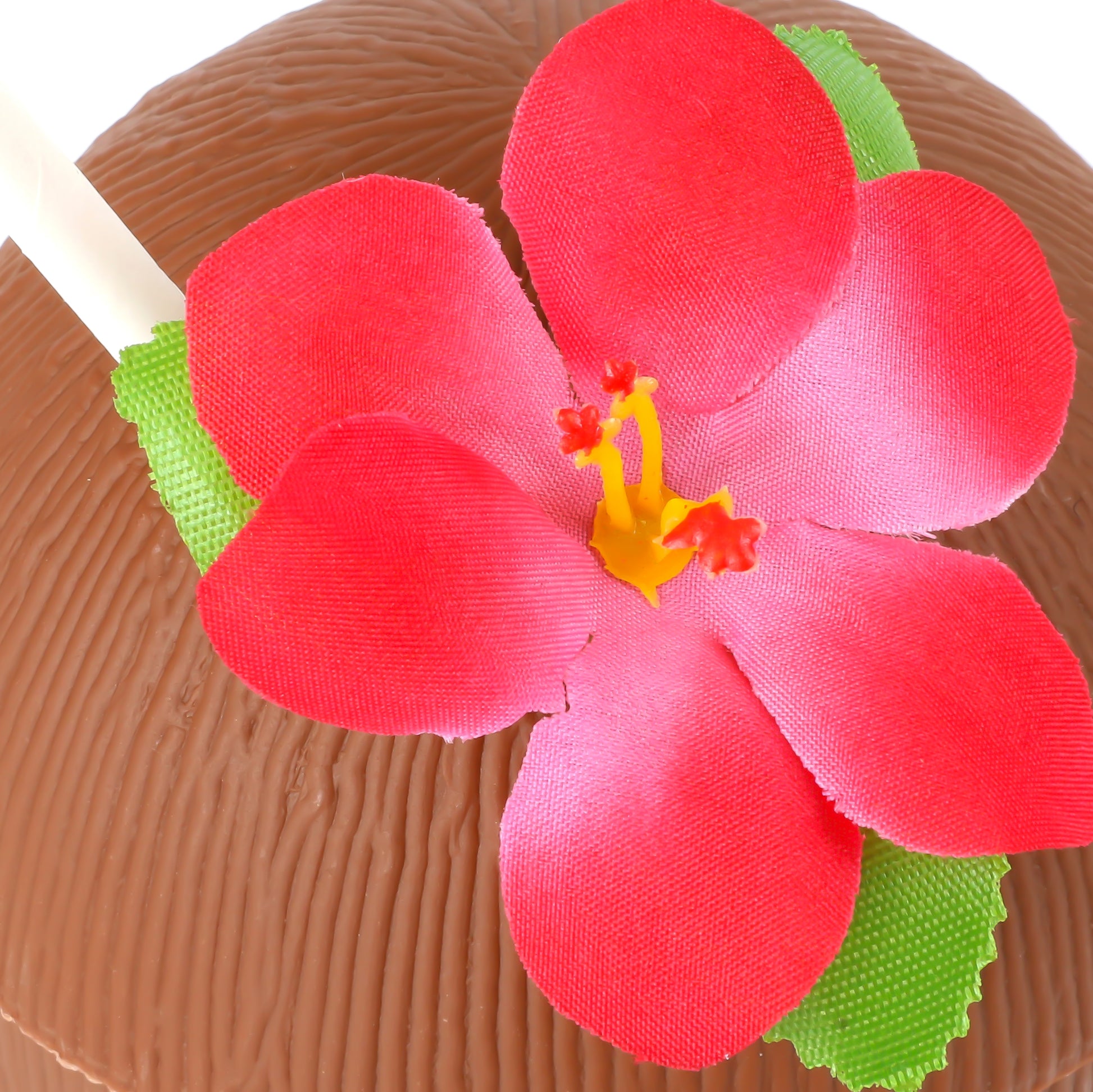 COCONUT CUP WITH RED FLOWER AND PAPER STRAW