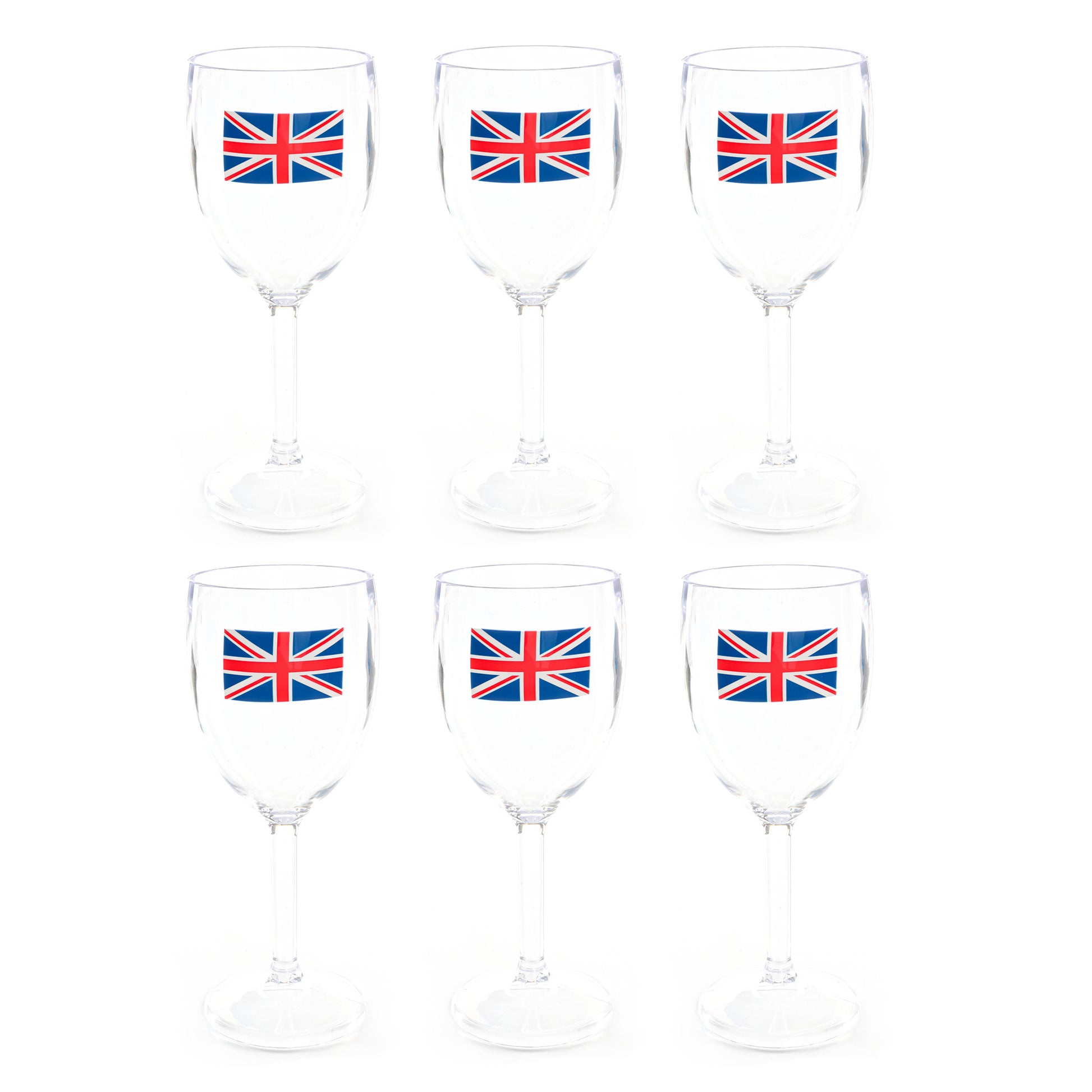 - High quality, heavy duty and durable plastic cups with a Union Jack print - these plastic wine glasses are made from high quality food grade polycarbonate plastic and will not crack or break easy. A strong plastic glass is exactly what you need for your party supplies.