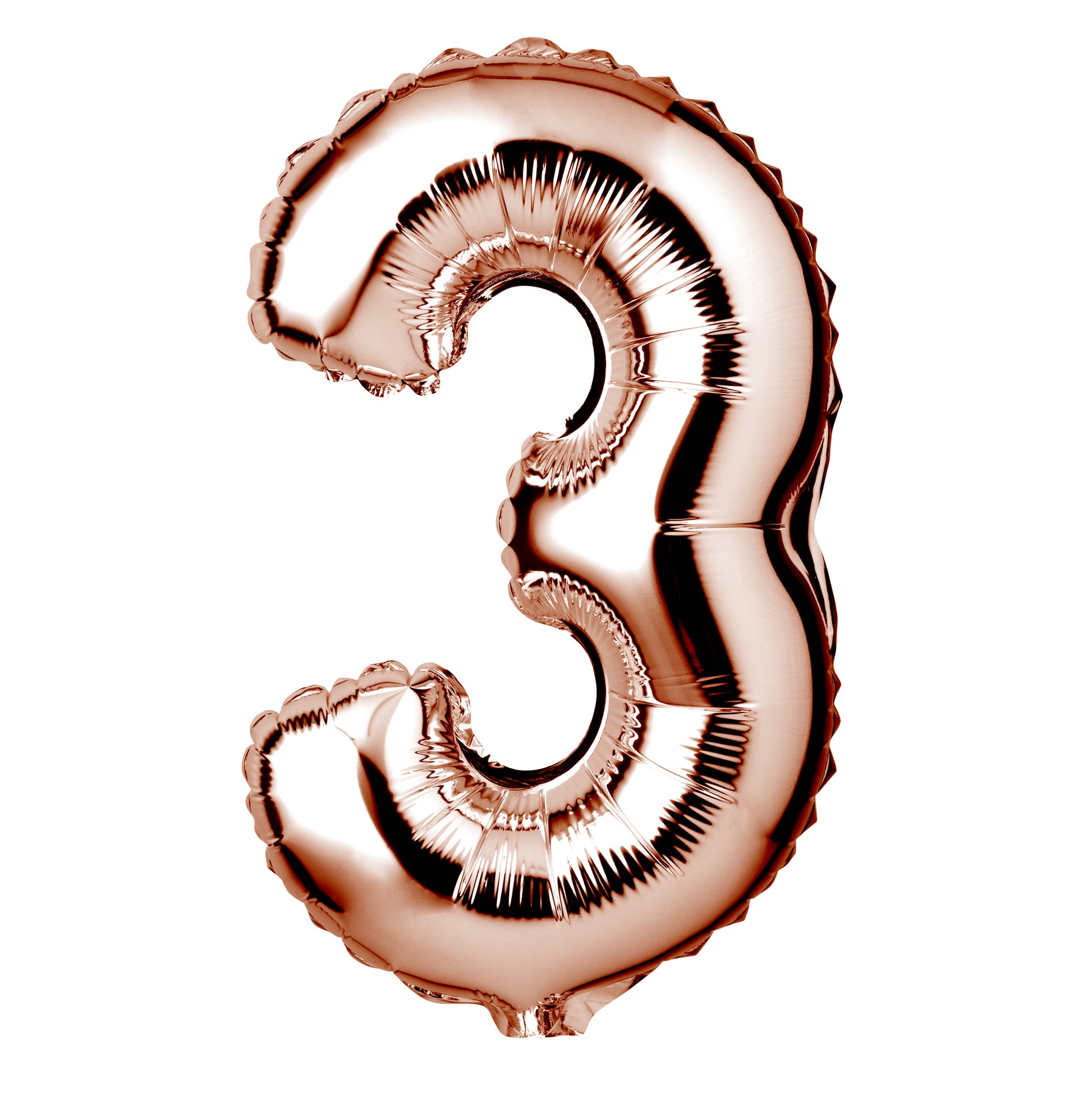 - 1pc will arrive uninflated as a 40” Rose Gold number 3 foil balloon, when inflated the balloon will go to a 34" size. Balloons can be inflated by air with a long straw or by purchasing a disposable helium gas cylinder. Add Hi-Float with helium to keep balloons inflated for longer.