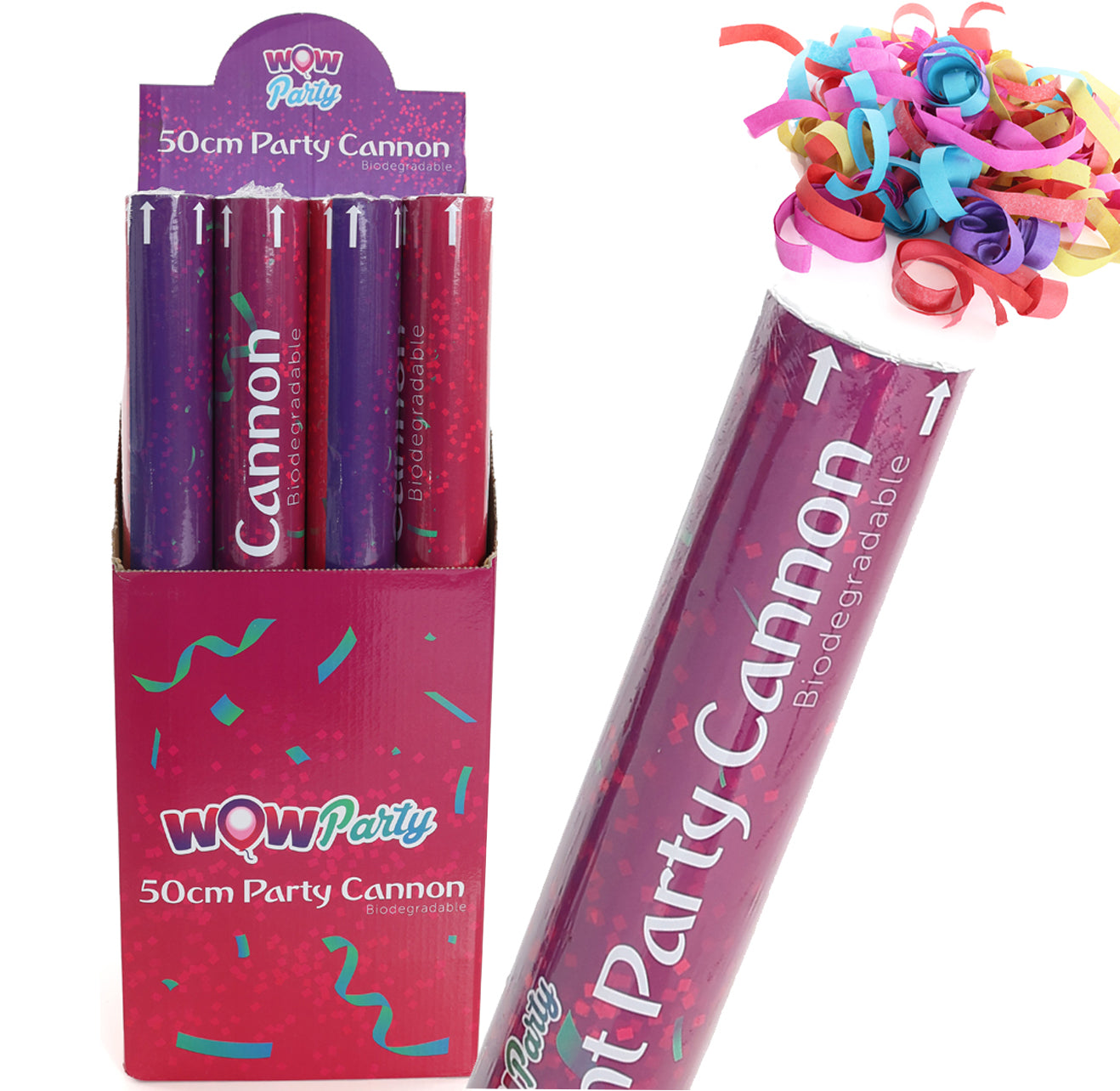 - 50cm large Confetti Cannon with multicoloured biodegradable and environmentally friendly confetti.