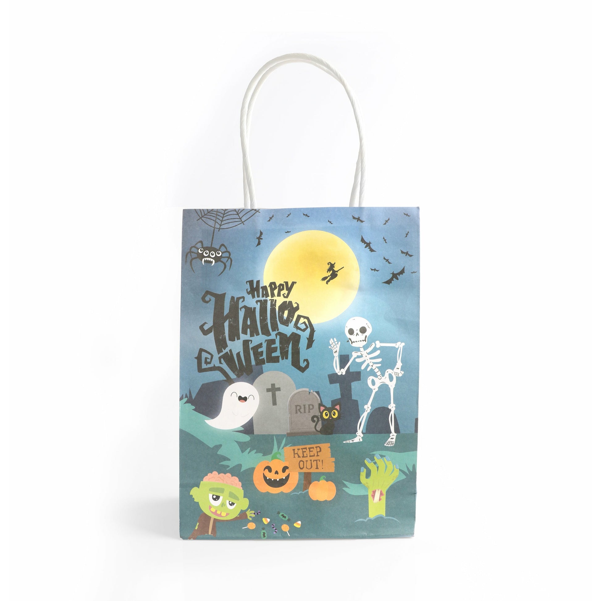 - The friendly Halloween design will put a smile on faces young and old. These paper gift bags are also well suited for end of term classroom activities – why not fill with other Halloween themed stickers, tattoos, maze puzzles, puzzle book and other favours