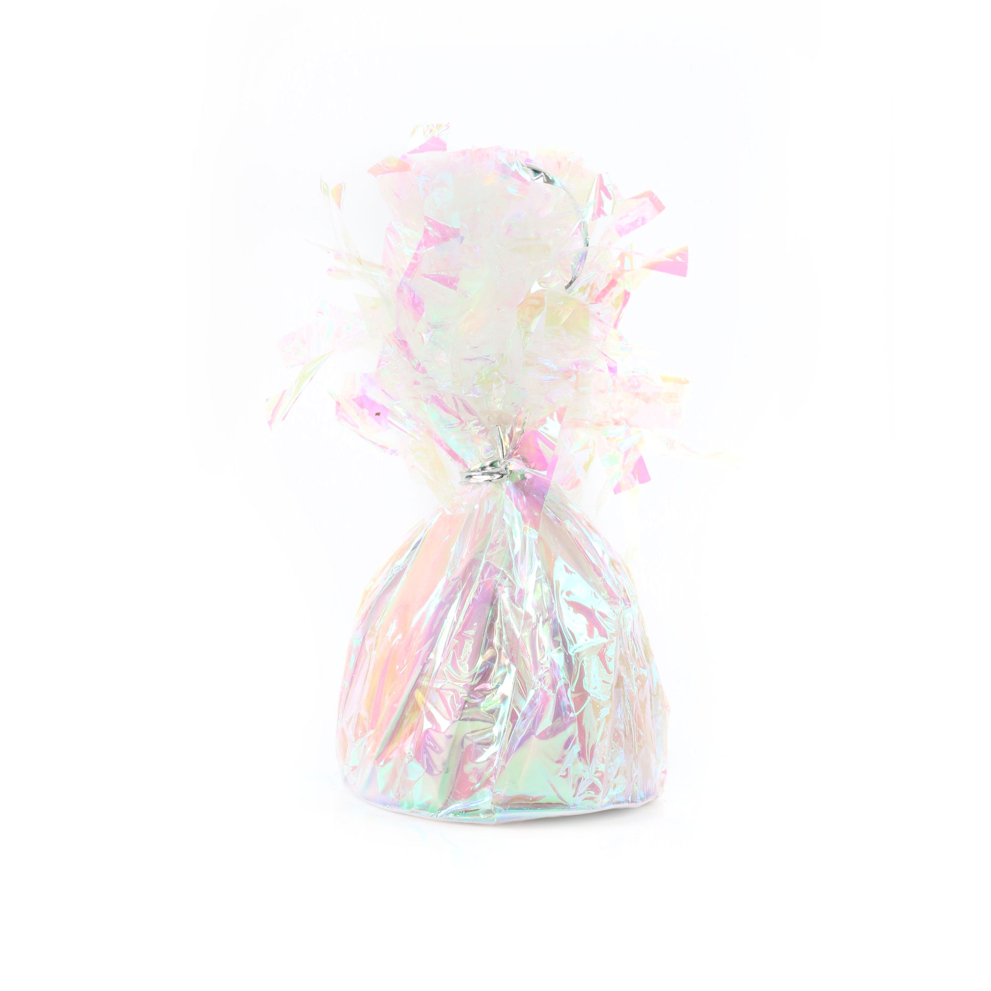 - Iridescent Foil balloon weight with a pretty fringed foil finish.