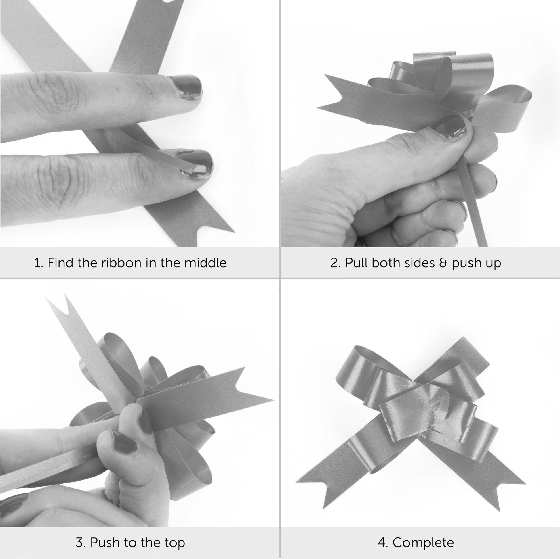 - HOW TO USE: The ribbon pull bows are very easy to assemble and takes seconds to produce your bow, simply pull the two inner ribbon strings to form a beautiful bow, you can even flatten the bow and reuse it after.