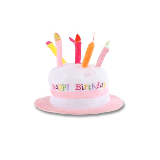 Light Up Happy Birthday Cake Hat Pink with Candles