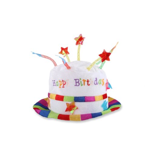 - LIGHT UP HAPPY BIRTHDAY WITH NOVELTY HAT IN RAINBOW COLOURS.