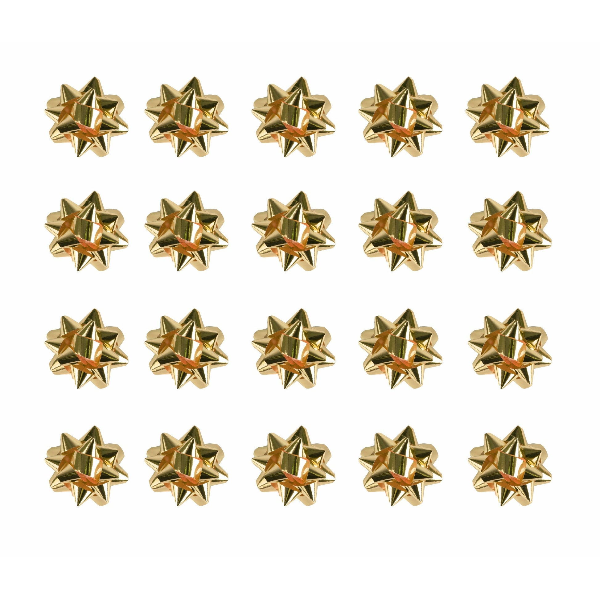 - Pack of 20 Medium Shiny Metallic Foil Decorative Bows in Gold only.