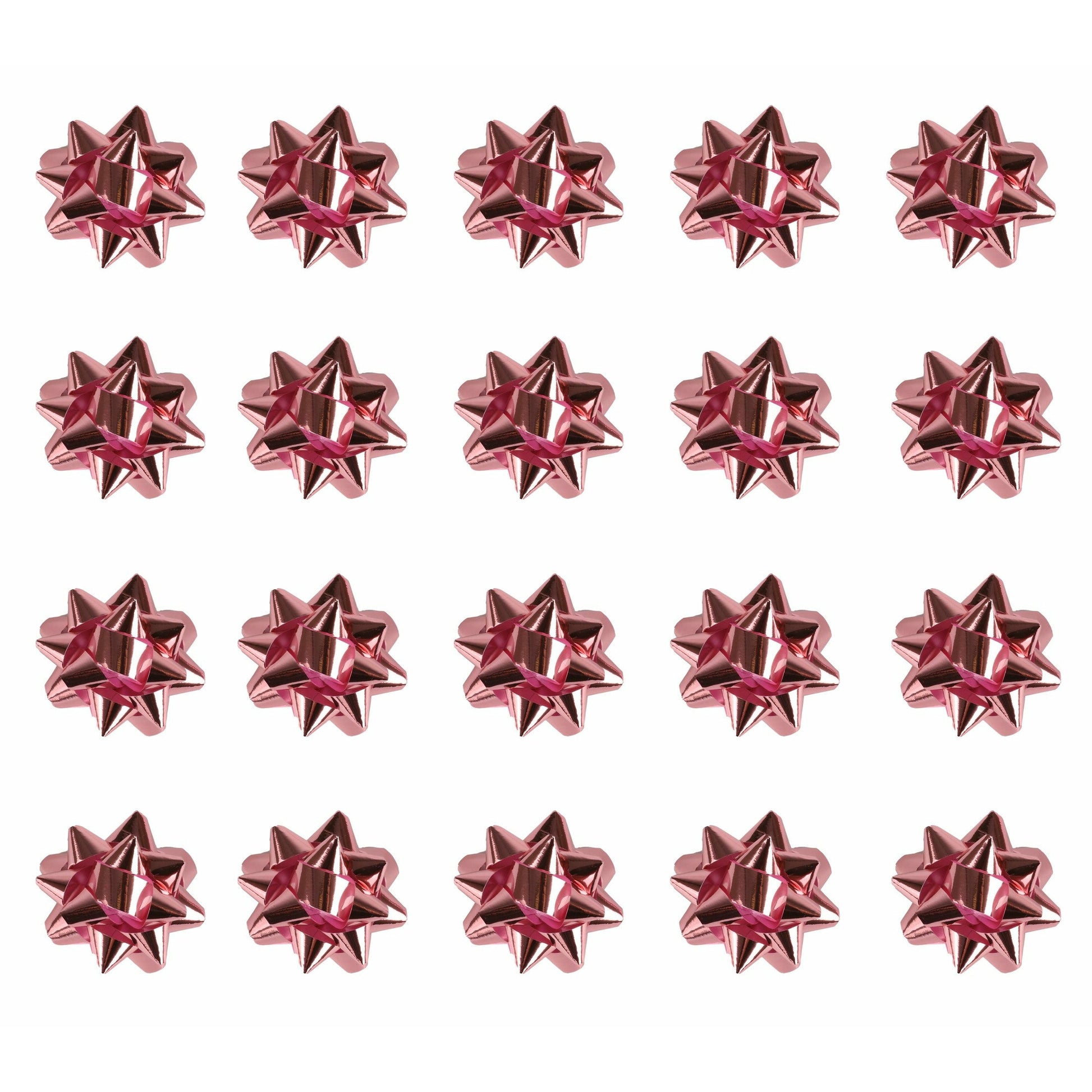 - Pack of 20 Medium Shiny Metallic Foil Decorative Bows in Pink only.