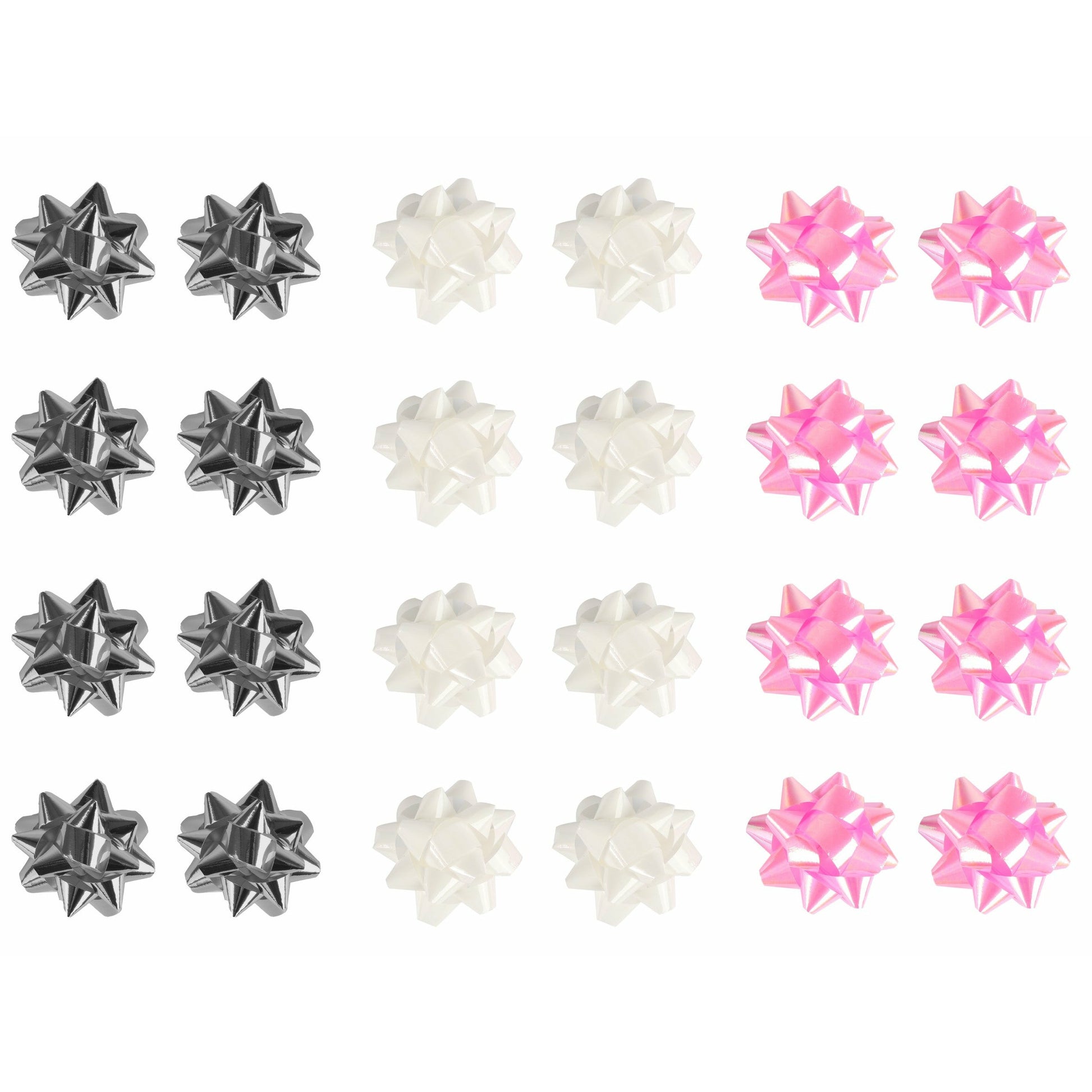 Small Foil Bows Baby Pink Silver White Pack 25 Assortment