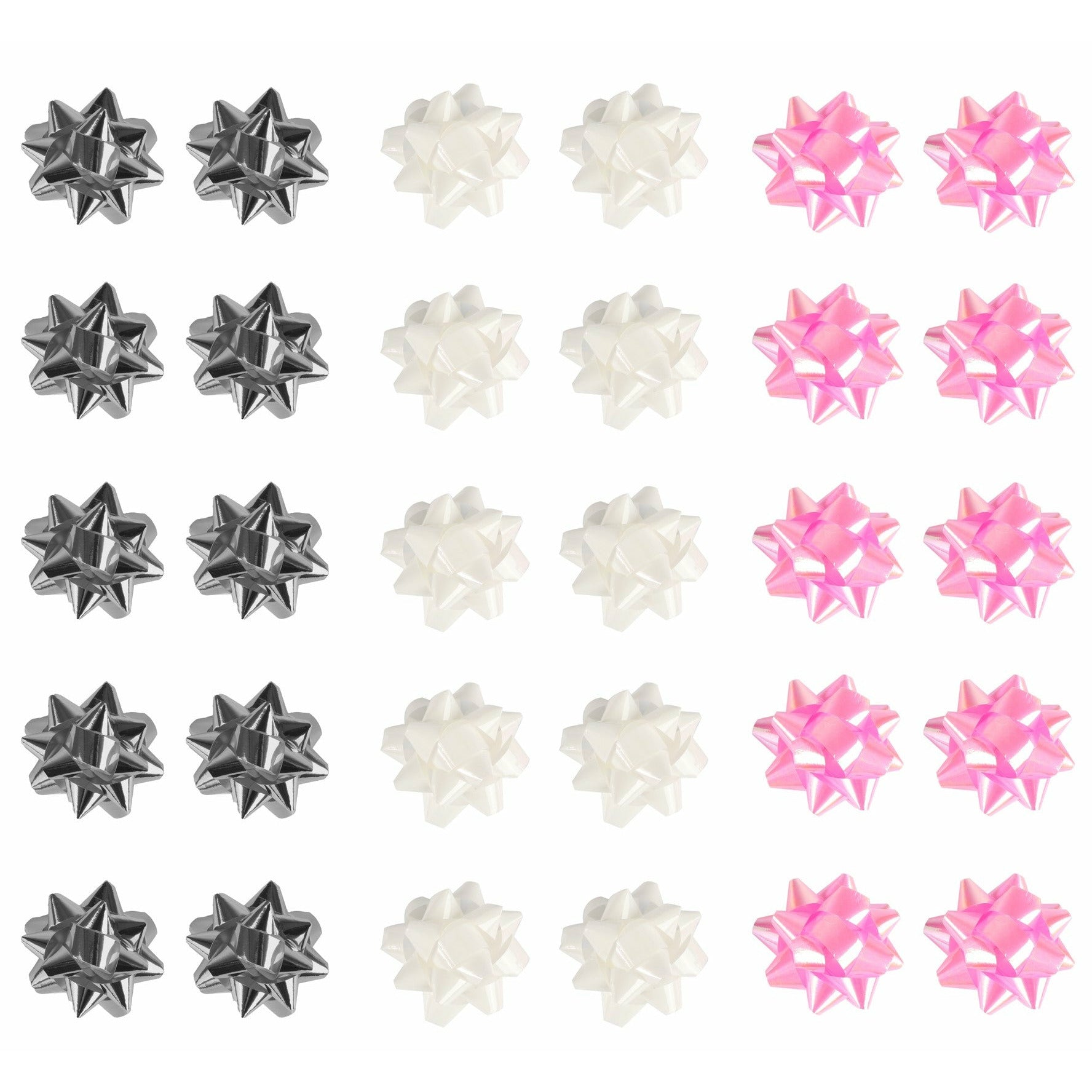Mini Foil Bows Baby Pink Silver White Pack 30 Assortment