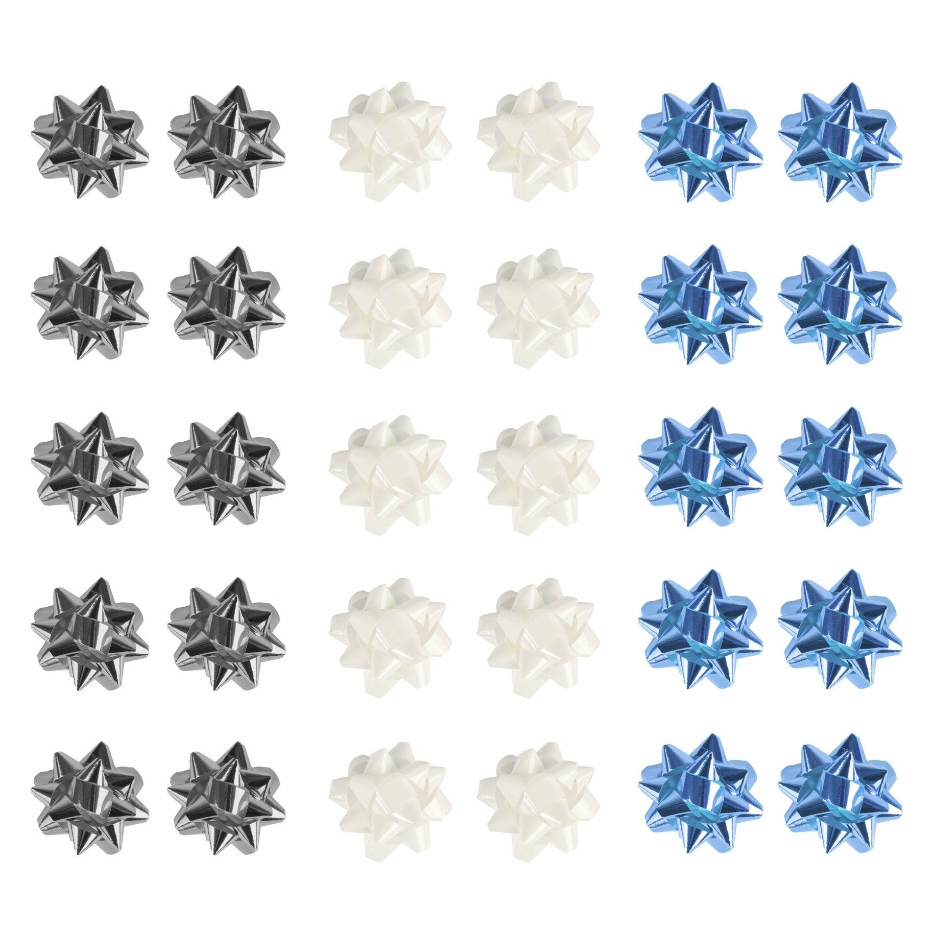 Mini Foil Bows Ice Blue White Silver Pack 30 Assortment