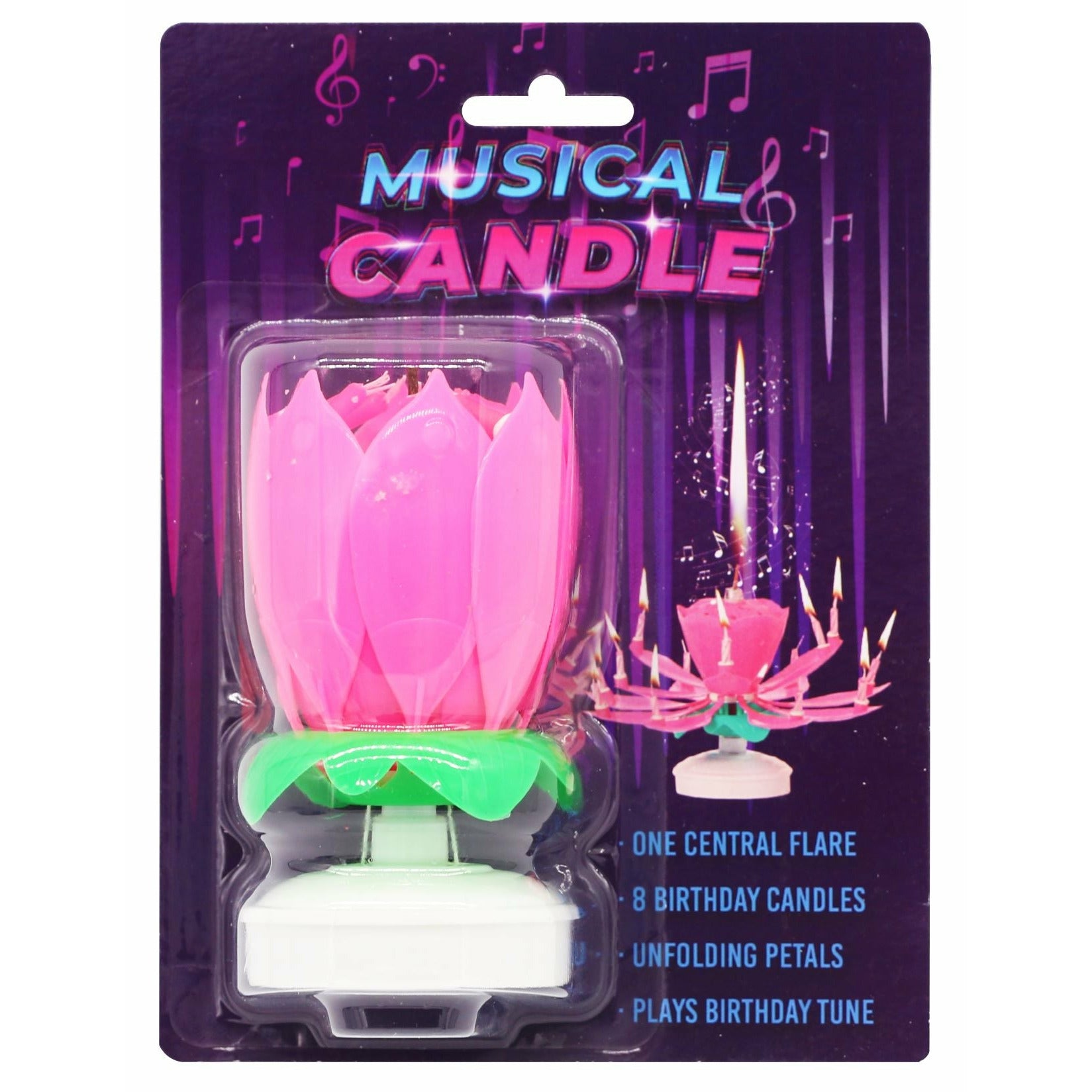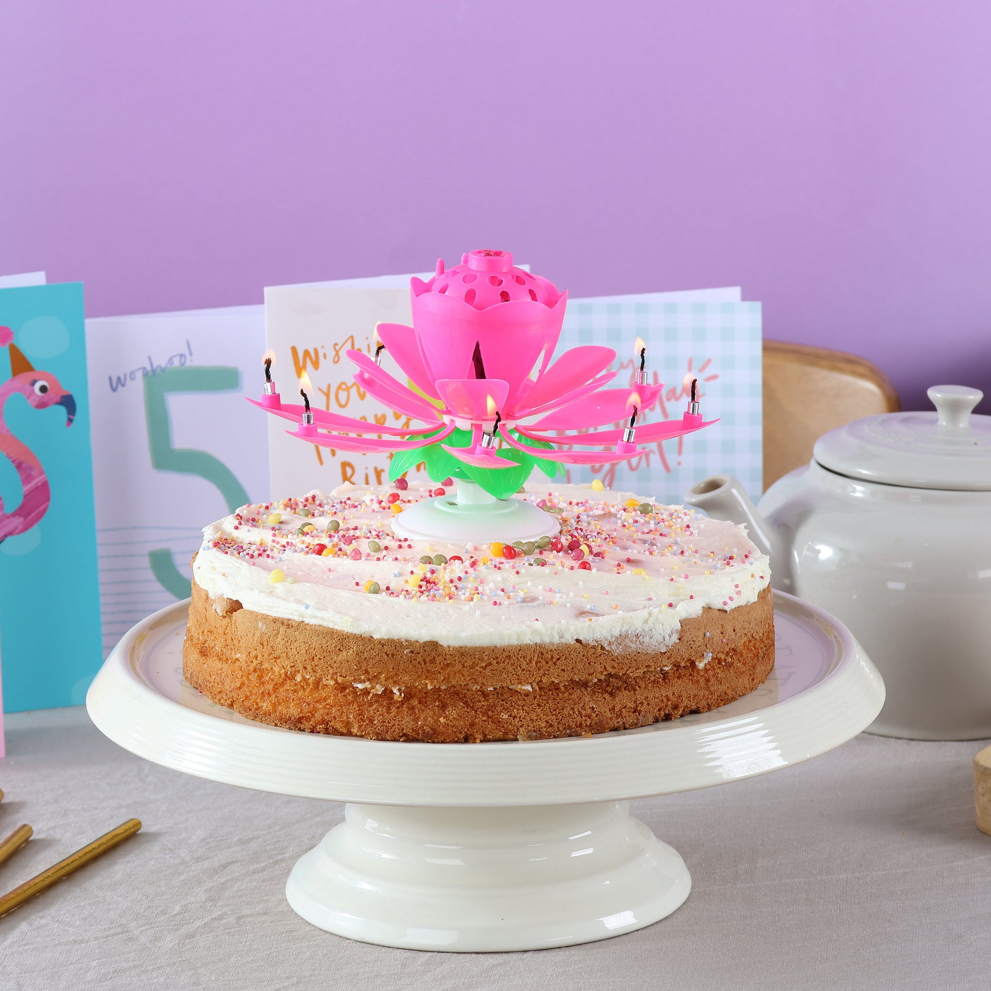 - Bring some fun to any party and celebrate the cake with this singing, rotating flower candle.