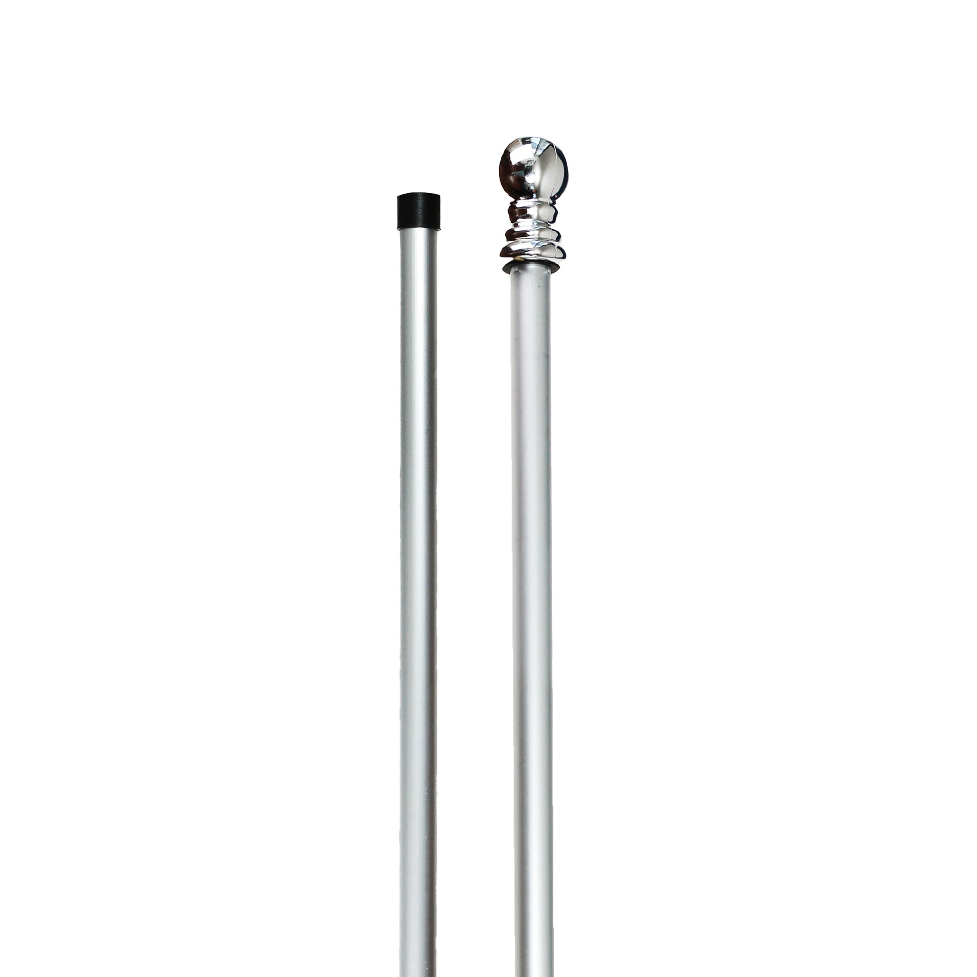 - 6ft Aluminium Flag Pole comes with metal wall bracket, fittings, silver finial and anti tangle flag mounting rings.