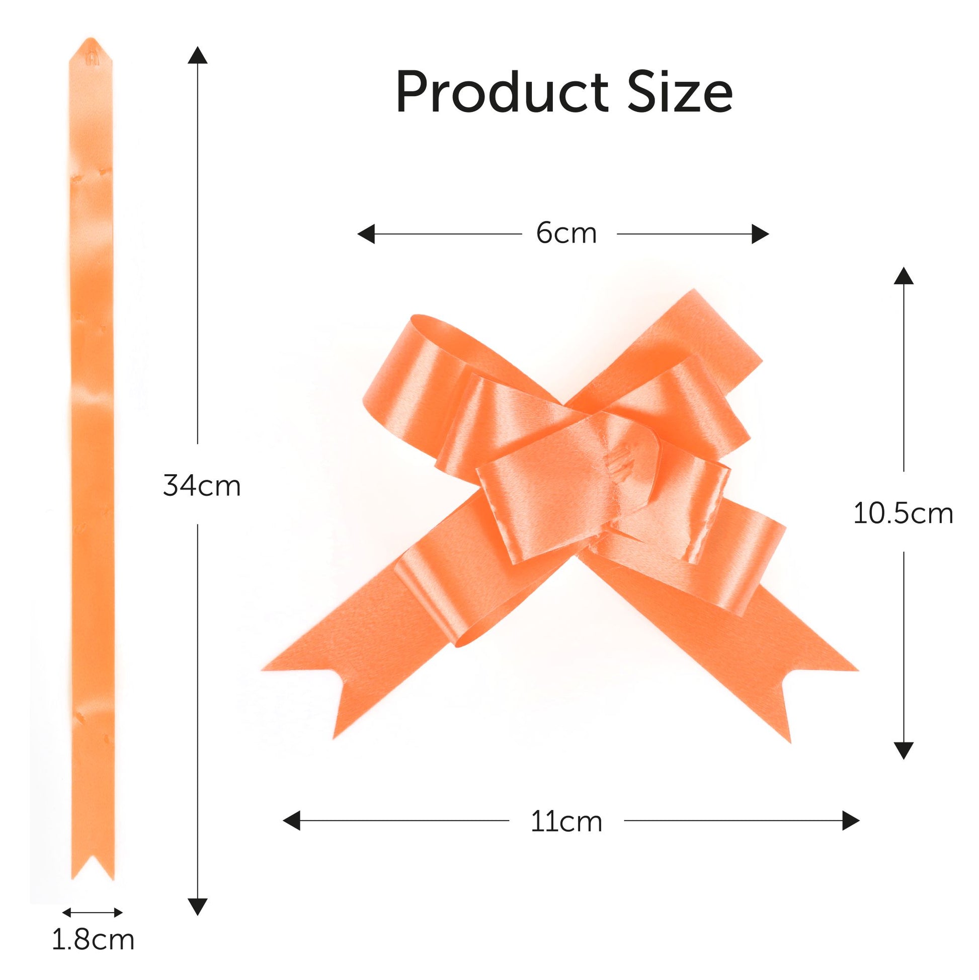 - WHAT YOU WILL RECEIVE: A Box of 20 Orange Mini Pull Bows measuring approx 1.8cm x 31cm that when assembled makes a butterfly bow measuring approx 6cm x 10.5cm. Please see the guide of the size on the image attached.