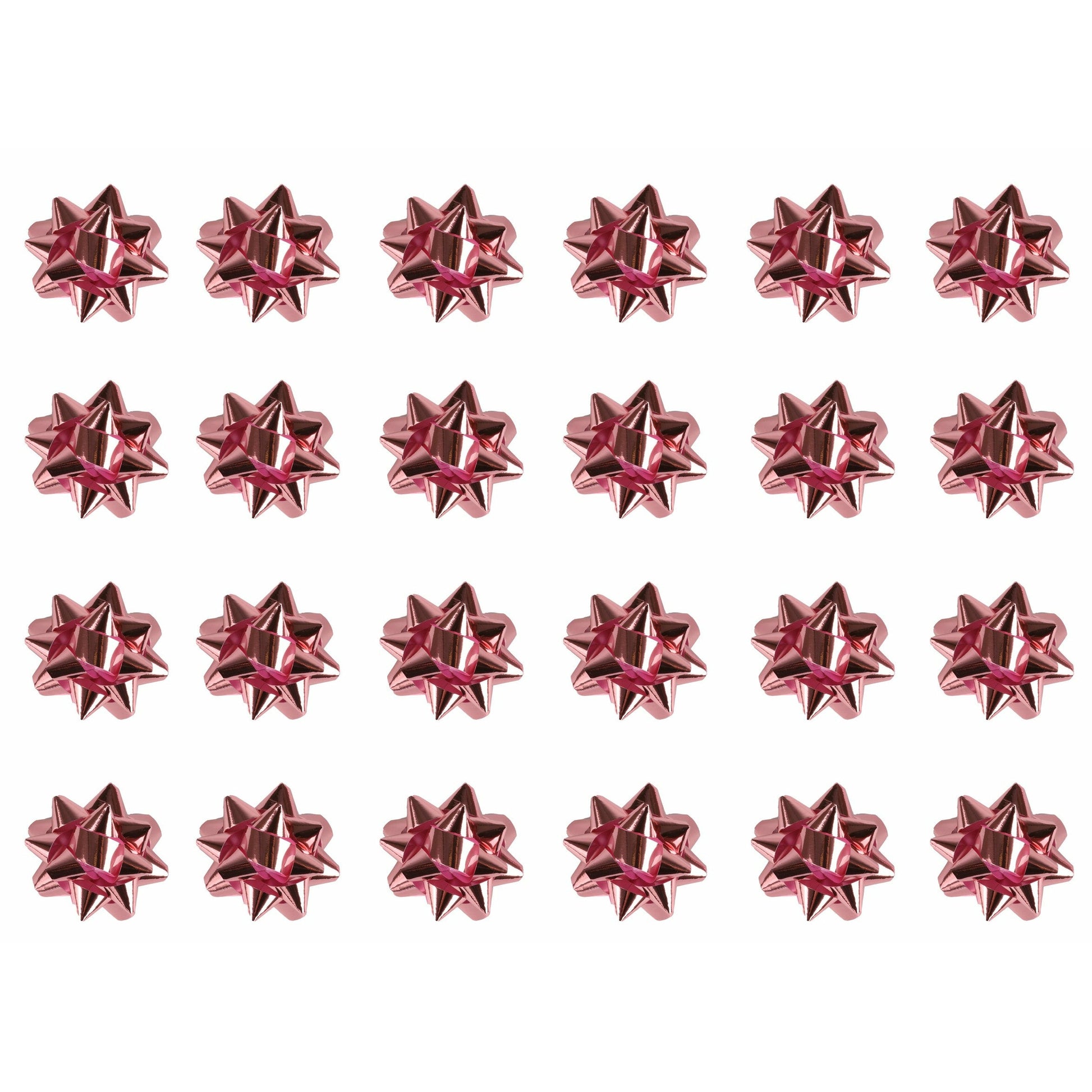 - Pack of 25 Small Shiny Metallic Foil Decorative Bows in Pink only.
