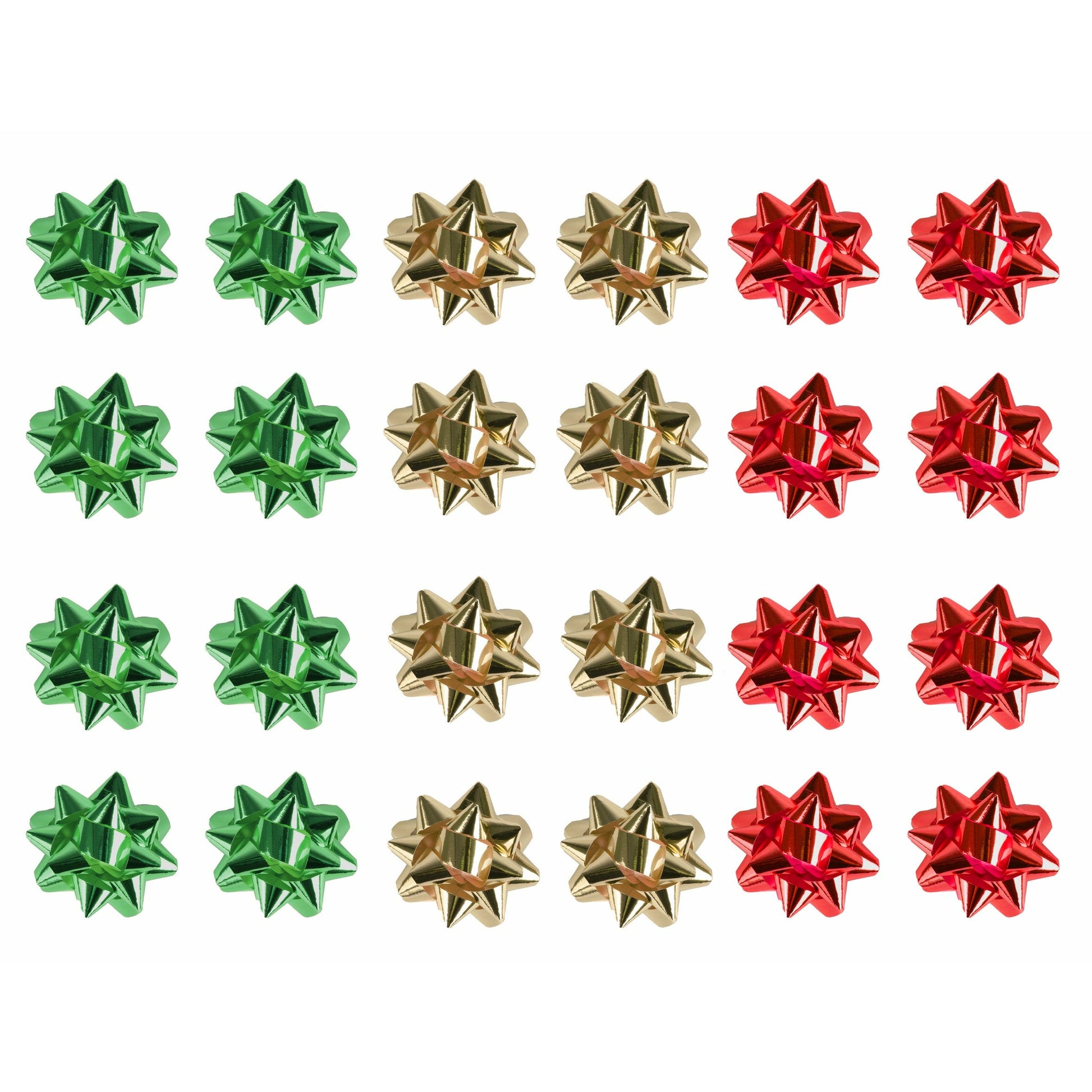 - Pack of 25 Small Shiny Metallic Foil Decorative Bows - Red, Gold and Green.