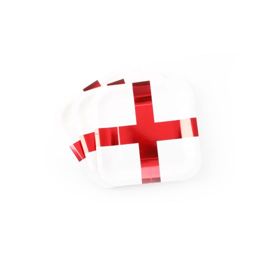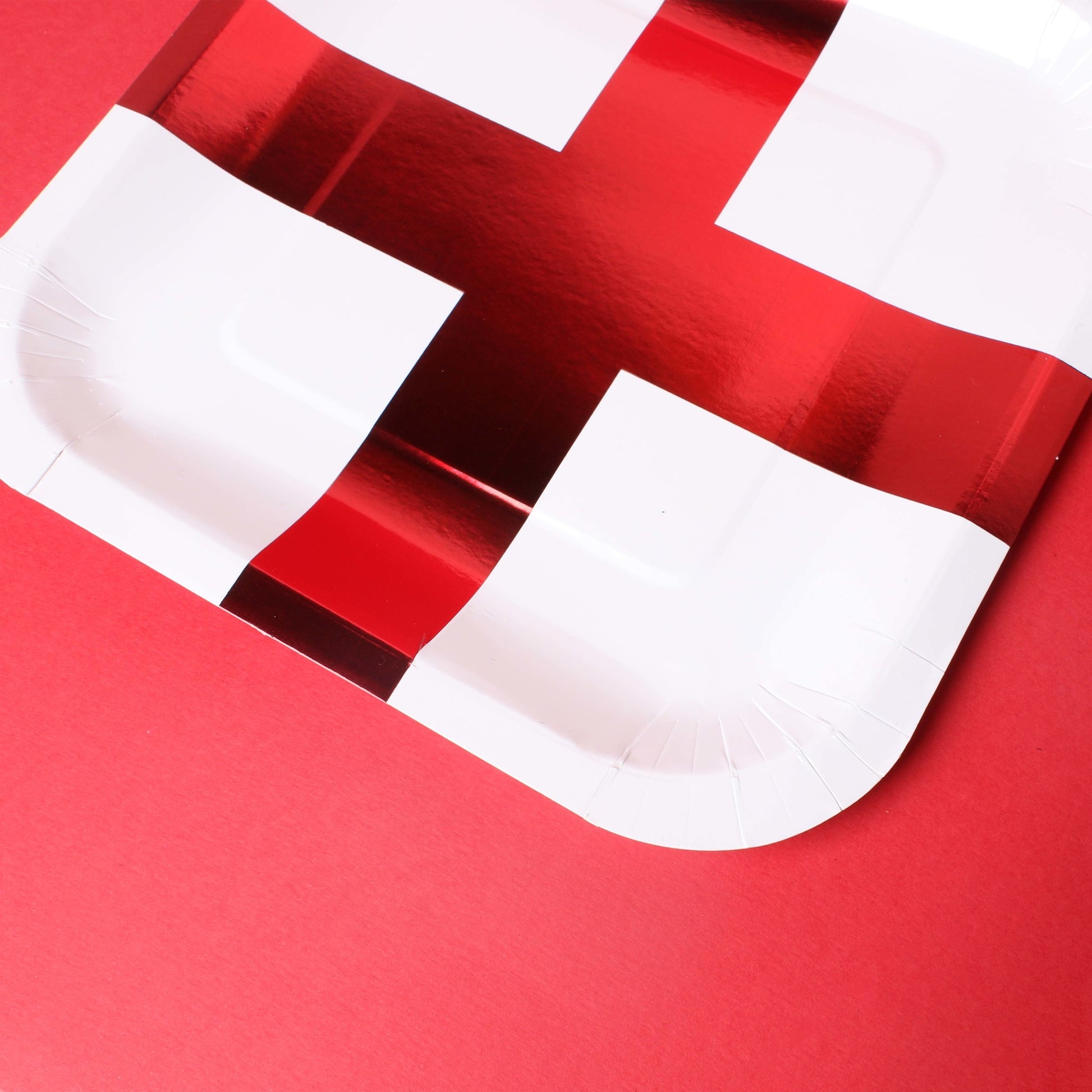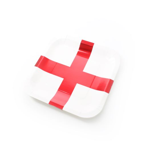 - PLATE DESIGN - Pack of 10 St George England flag printed 9 inch (approx 23cm) square Paper Plates. Red St George's cross has been upgraded to a red foil cross to give the wow factor at your party or theme.