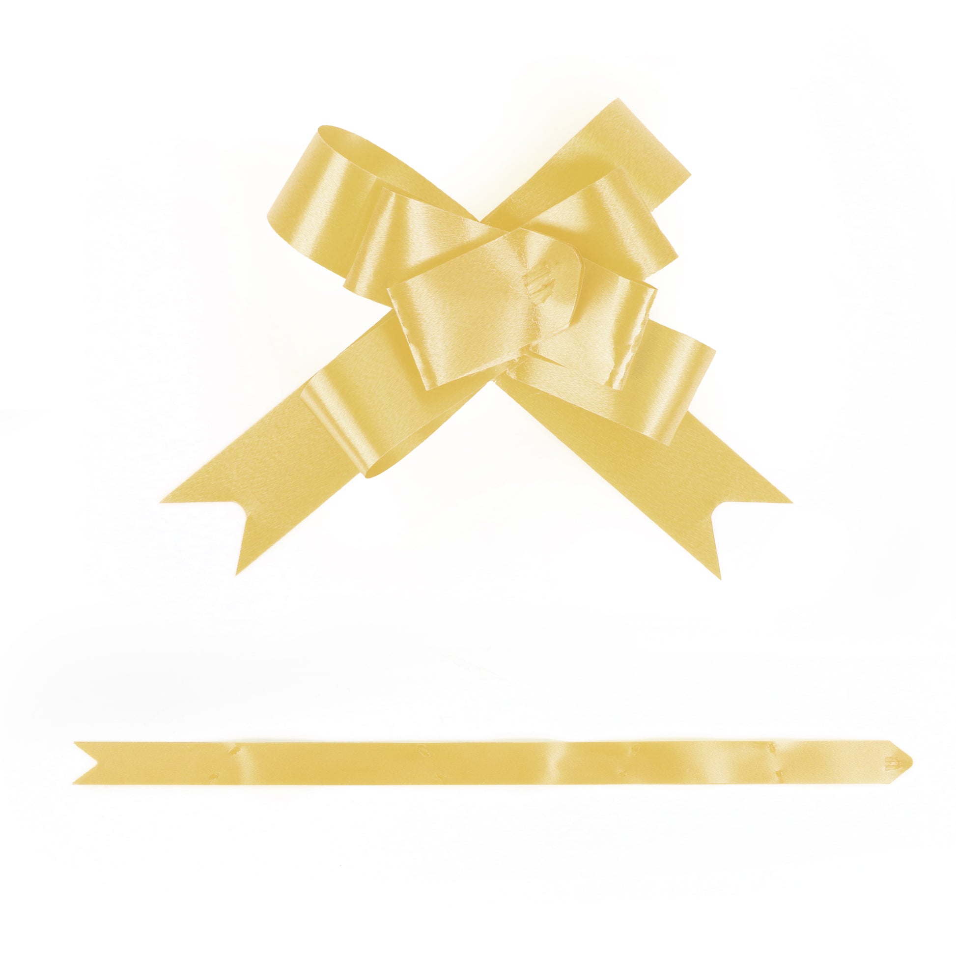 - WHAT YOU WILL RECEIVE: A Box of 20 Gold Mini Pull Bows measuring approx 1.8cm x 31cm that when assembled makes a butterfly bow measuring approx 6cm x 10.5cm. Please see the guide of the size on the image attached.