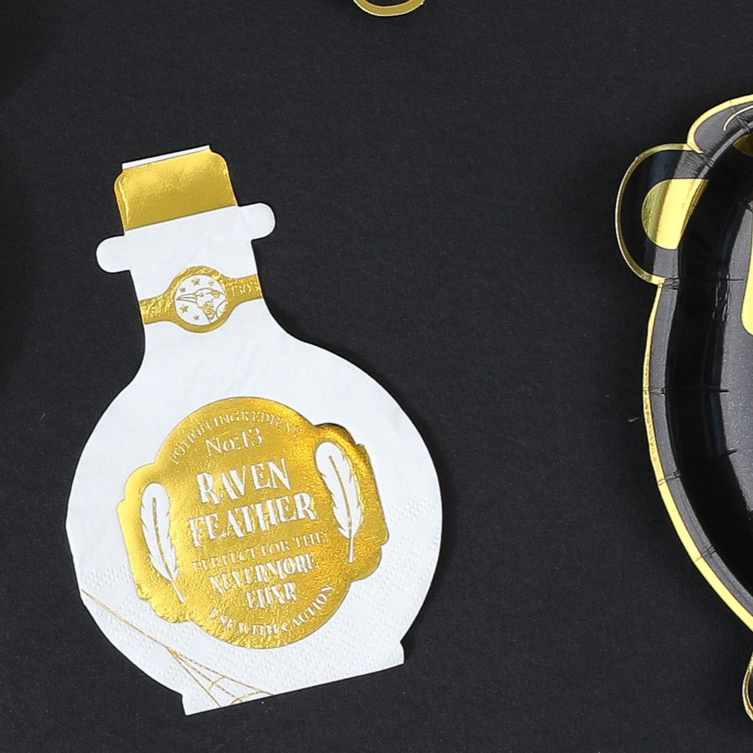 - HALLOWEEN PARTYWARE - PK/20 good quality Potion Bottle design themed paper napkins. White bottle shape with gold foil design.