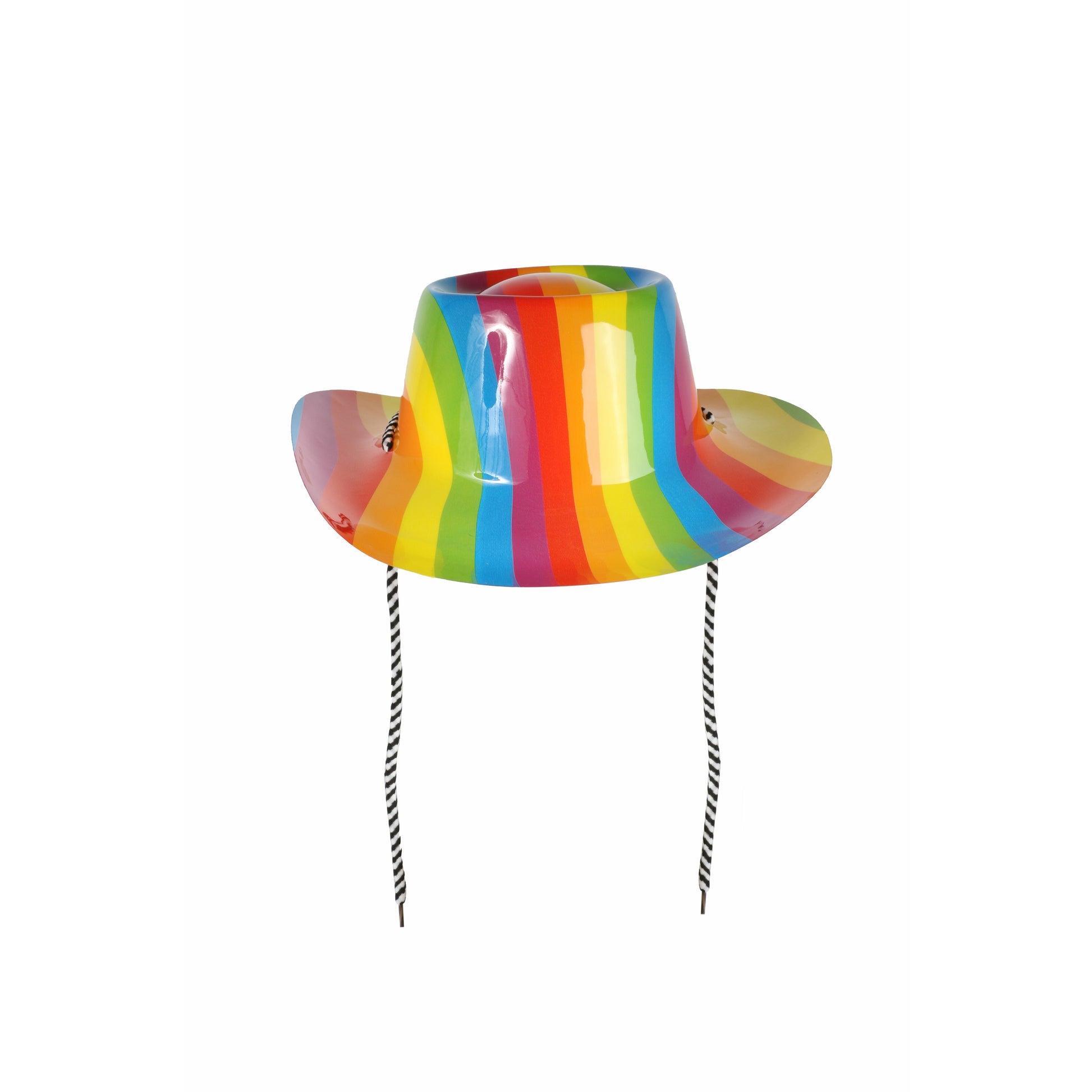 You will be purchasing a pride rainbow colours plastic cowboy hat.