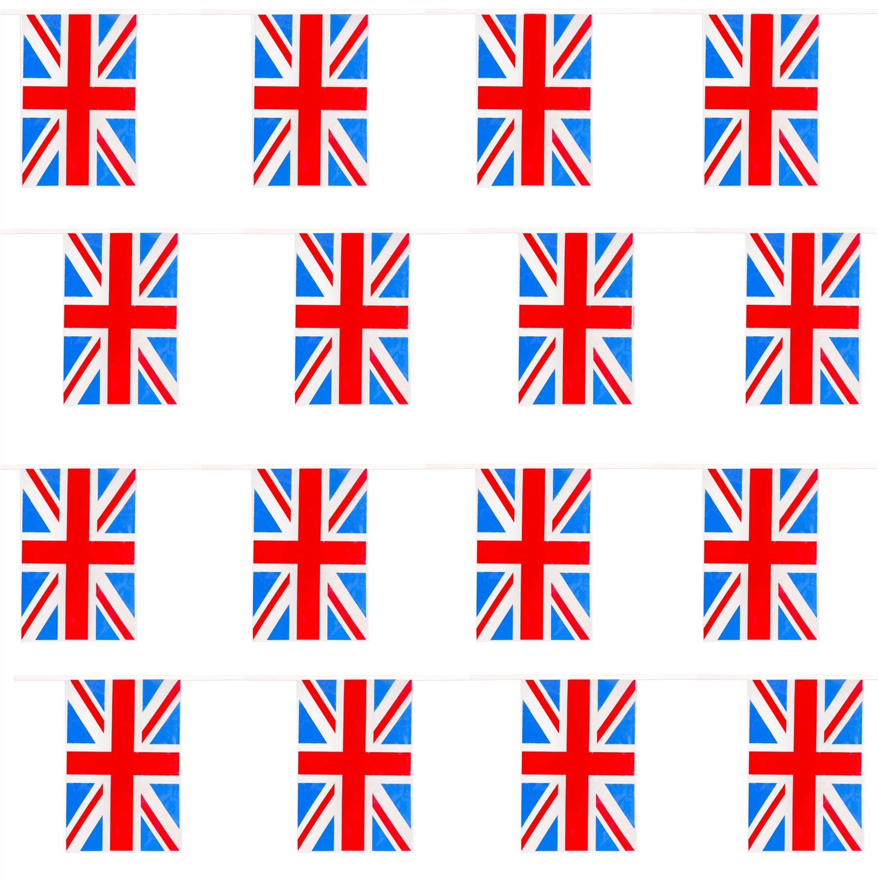 - BUNTING DIMENSIONS - 10 Metre Length Polyester Bunting Strip with 24 Union Jack flags, each flag measures 14 x 21cm.